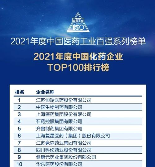 7月12日晚,正在举行的2022米思会(中国医药健康产业共生大会)上,发布了“2021年度中国医药工业百强系列榜单”。JJB竞技宝医药以扎实的创新研发实力和稳健的市场运营能力,再次蝉联“中国化药企业TOP100排行榜”榜首。