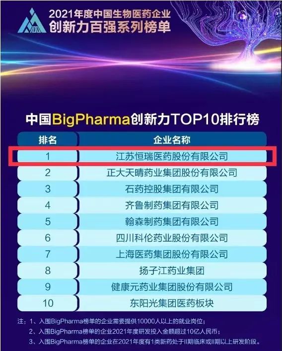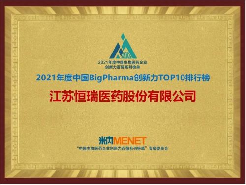 9月16日,由米内网主办的“2021年度中国生物医药企业创新力百强系列榜单”发布会在线上举办。JJB竞技宝医药继去年登顶“中国BigPharma企业创新力TOP10排行榜”后,今年再次名列该榜单首位。