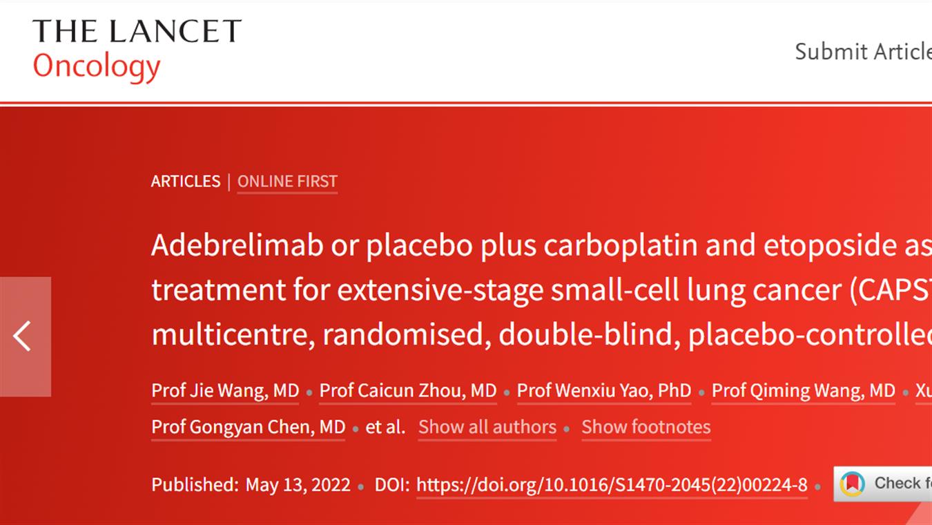 JJB竞技宝卡瑞利珠单抗联合阿帕替尼最新研究成果荣登《柳叶刀·肿瘤》