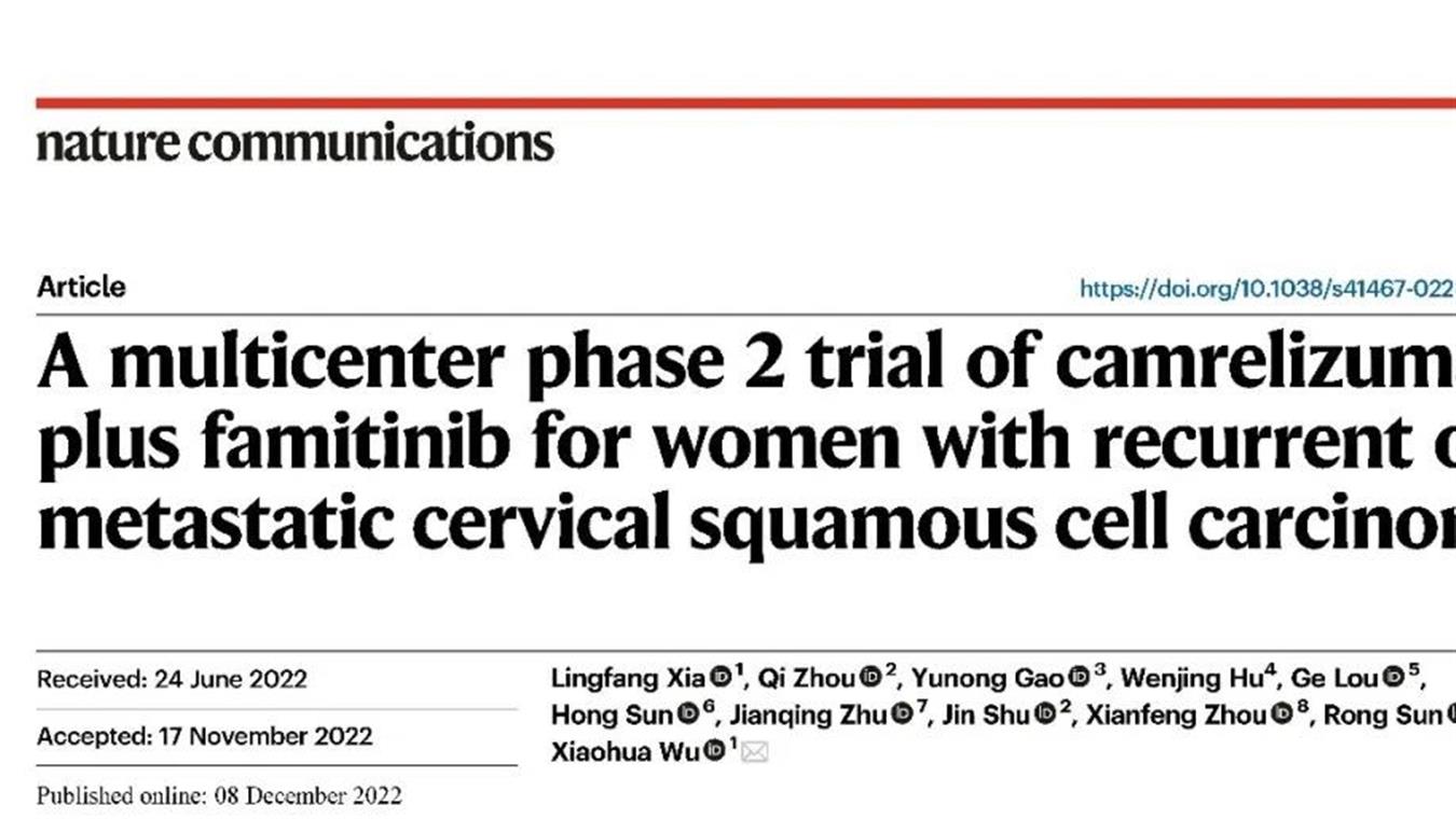 JJB竞技宝创新药卡瑞利珠单抗联合法米替尼用于复发或转移性宫颈癌研究结果荣登JCO